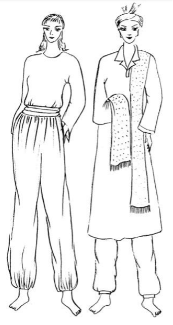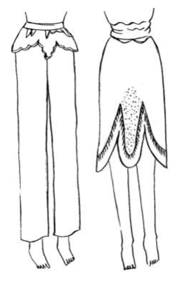 Bentuk ini muncul untuk melengkapi pakaian kaftan yang biasanya dibuat menutupi seluruh tubuh, sehingga timbul ide untuk memisahkan busana bawah dan atas. Busana atas disebut tunik dan bawah dikenal dengan rok. Dari rok inilah dirubah menjadi bentuk celana yang diberi lobang untuk memasukkan kaki. Celana biasa dipakai oleh wanita dan laki-laki seperti di Albania, Persia, Tiongkok, Tunisia, dan Arab Saudi.