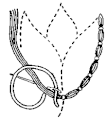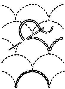 - tetapi sebelum loop (bentuk loop) hilang, jarum naik melewati tengah loop tersebut sehingga terbentuk tusuk rantai (panjang tusukan ditentukan oleh jarak dari tusukan awal ke tusukan ini).