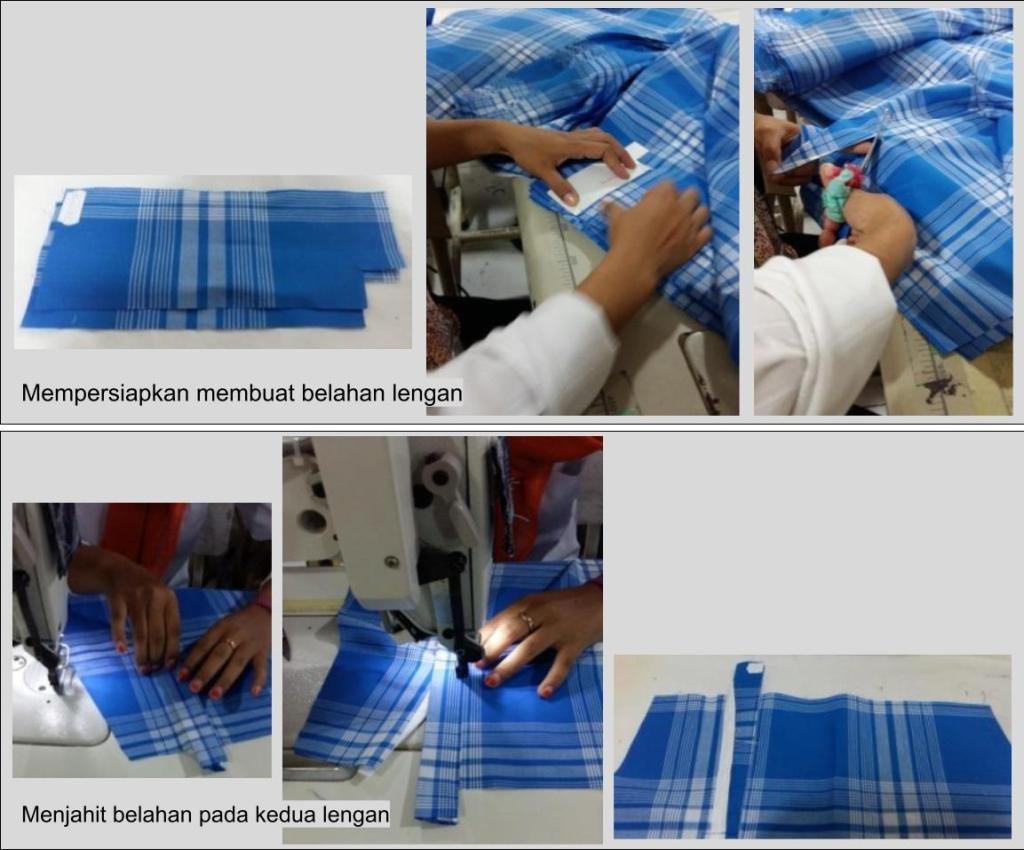 - Lakukan pemeriksaan kualitas jahitan manset, pastikan ukuran panjang atau lebarnya sesuai, jahitan tidak terlepas. Kegiatan ini dilakukan sebelum pekerjaan berikutnya.