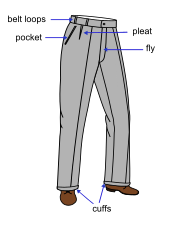 Celana bisa menggunkan sabuk atau pun bretel. Celana yang memakai bretel memiliki potongan yang agak berbeda di bagian pinggang, lebih tebal dan tinggi di bagian belakang.