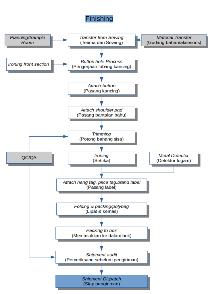 Hal-hal yang dikerjakan di departemen finishing antara lain: