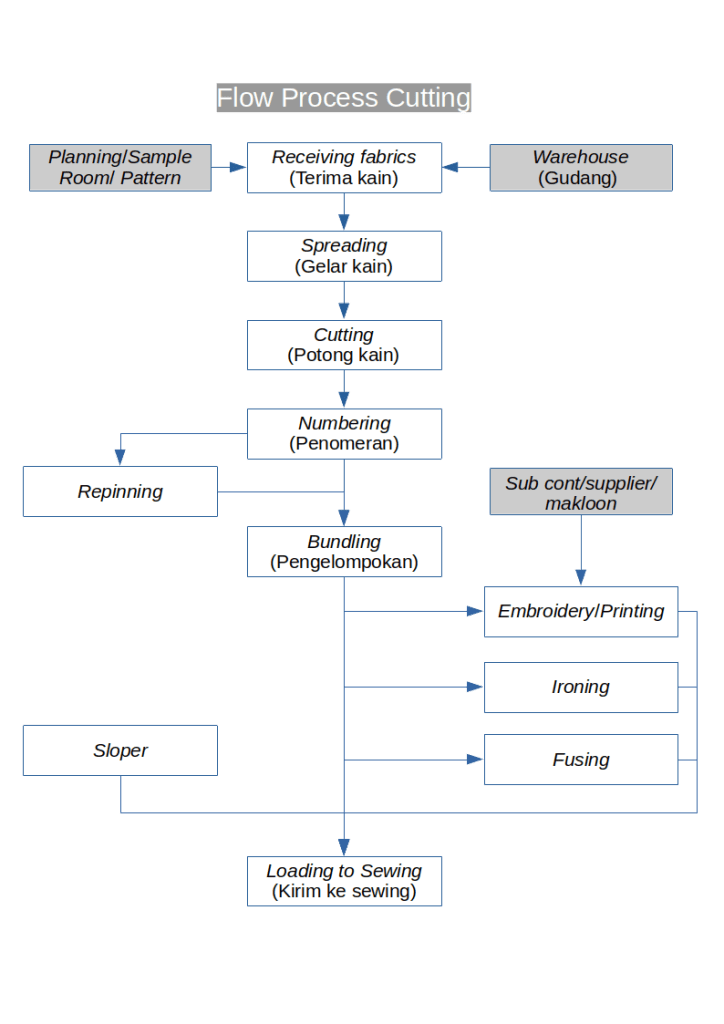 Hal-hal yang dilakukan di departemen cutting adalah sebagai berikut: