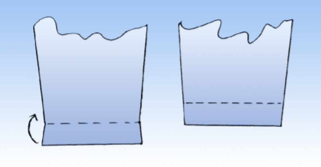 Gambar penyelesaian ban pinggang - Terakhir adalah kelim bawah celana. Lipat ujung bawah celana 0,5 cm ke arah dalam, kemudian lipat 3 cm lagi ujung tersebut ke arah dalam juga untuk membentuk kelim celana.