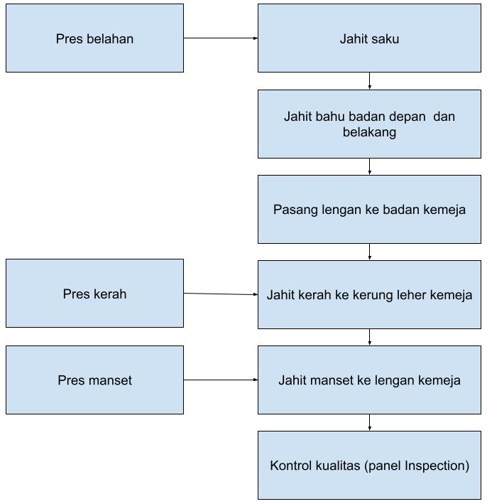 Agar proses menjahit (sewing) kemeja pria dapat dilaksanakan dengan efisiensi yang maksimal maka perencanaan produksi atau tertib kerja menjahitnya harus dibuat terlebih dahulu.