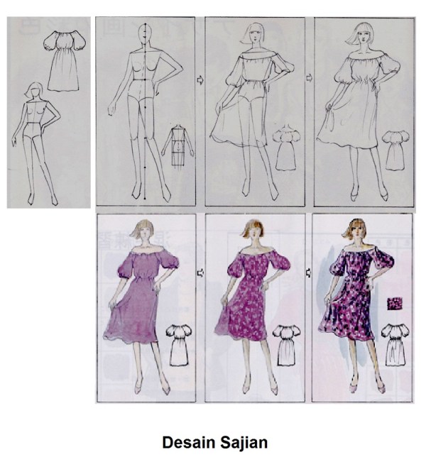 - Mulailah membuat rancangan busana pada proporsi tubuh, dimulai dari bagian atas busana turun ke bawah sesuai dengan pose.